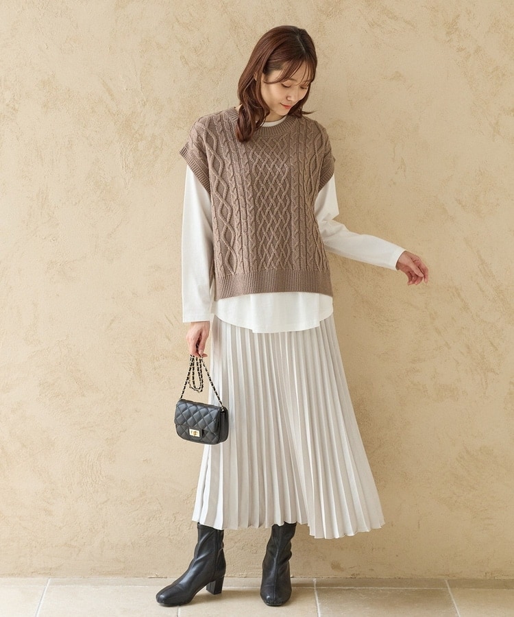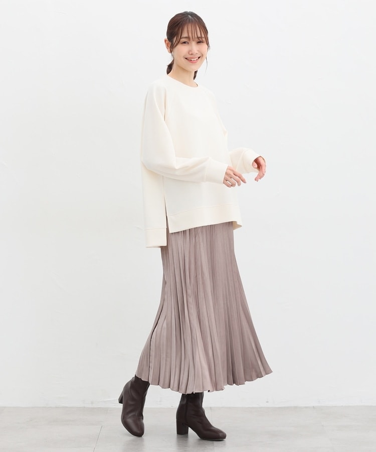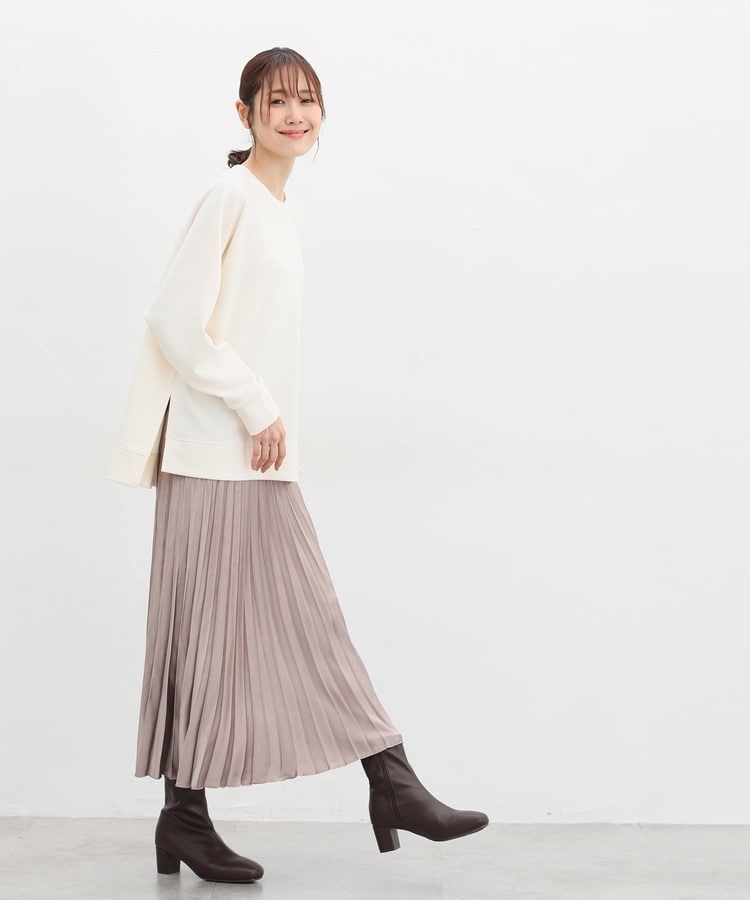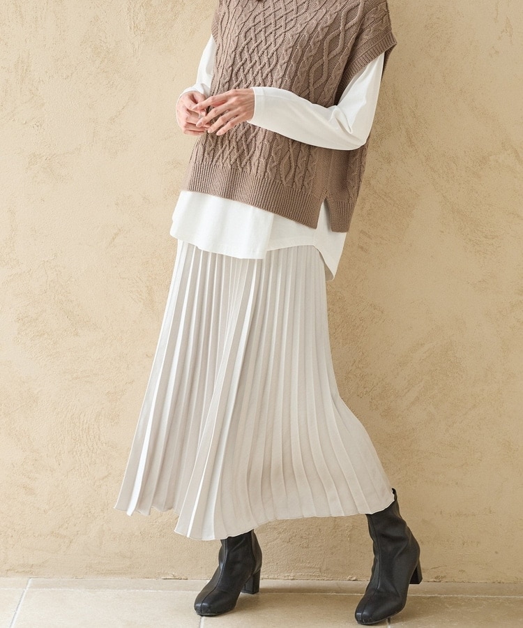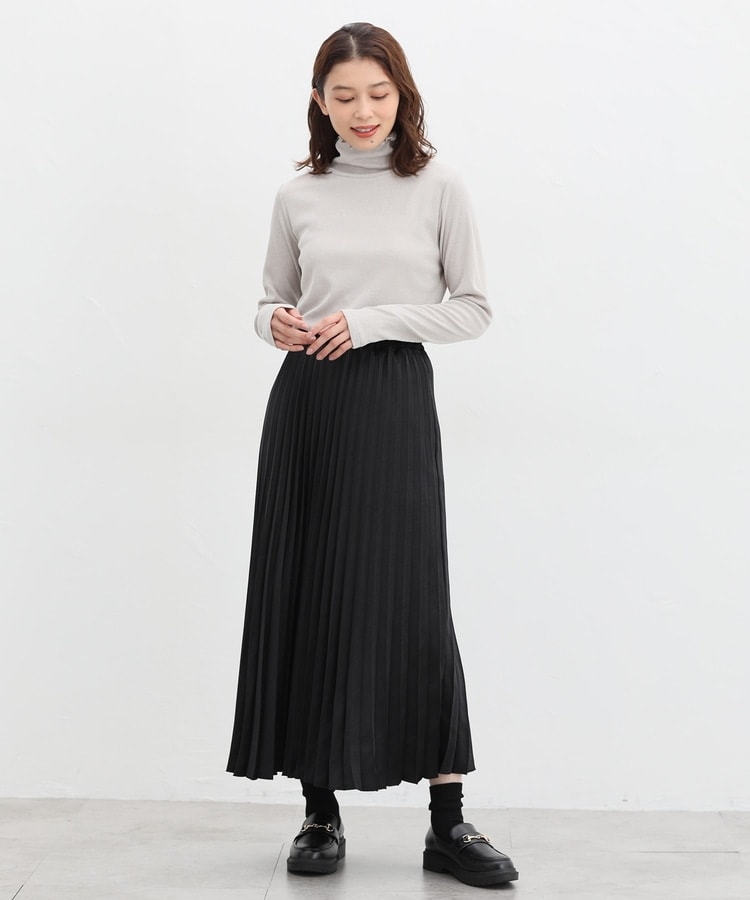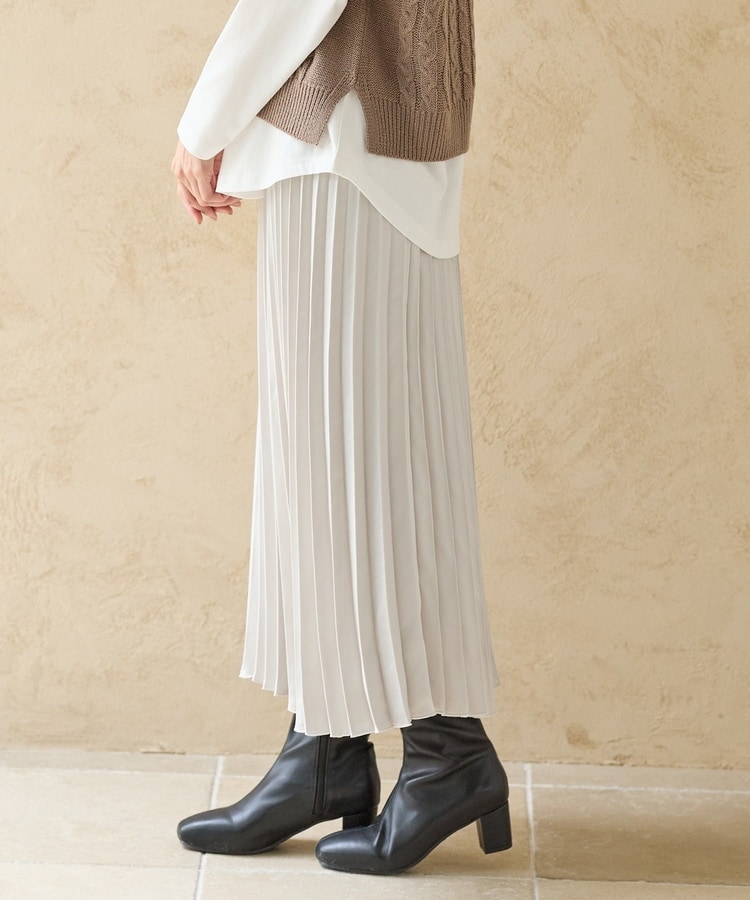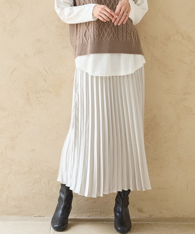 細かなプリーツが動くたびにふわりと揺れるAラインシルエット。