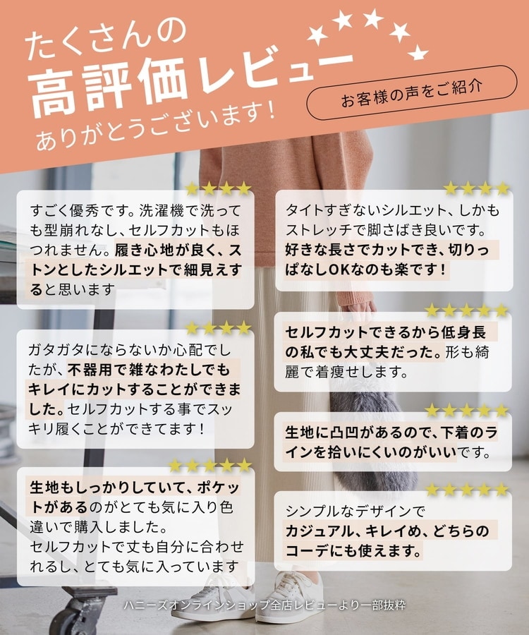 裾から15cmまで、自分にぴったりに『セルフカット』できるのがうれしいポイント♪