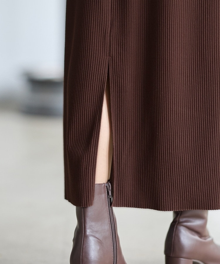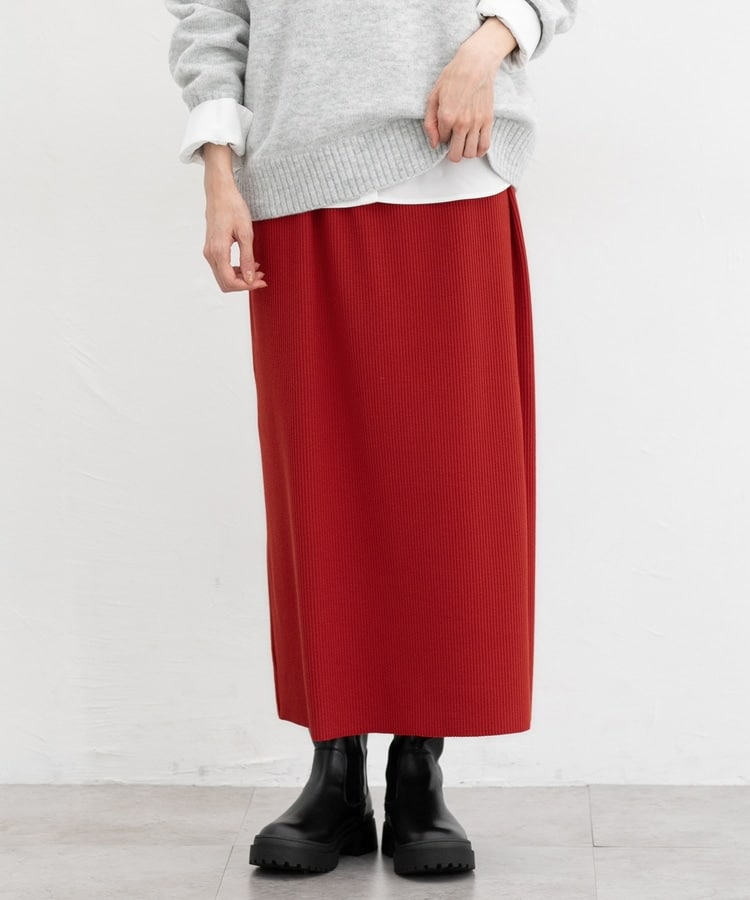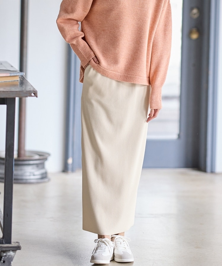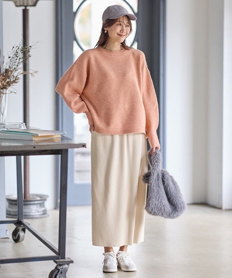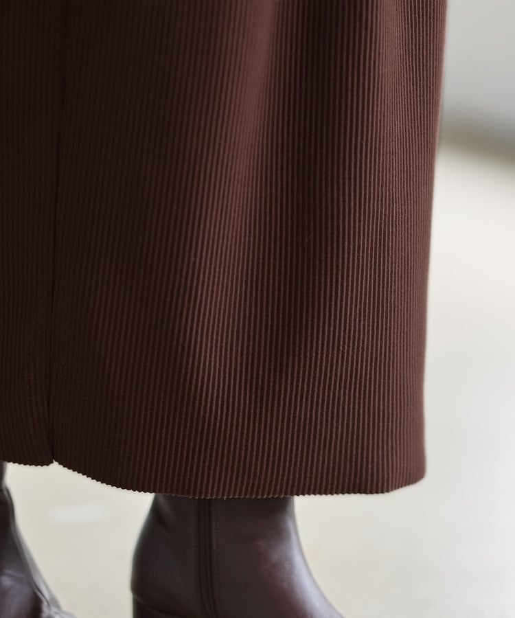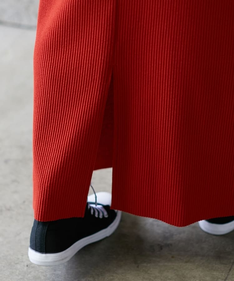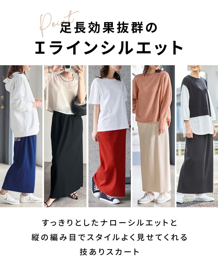縦の編み目とすとんとしたIラインシルエットで脚長効果抜群のシンプルデザイン。