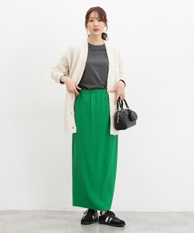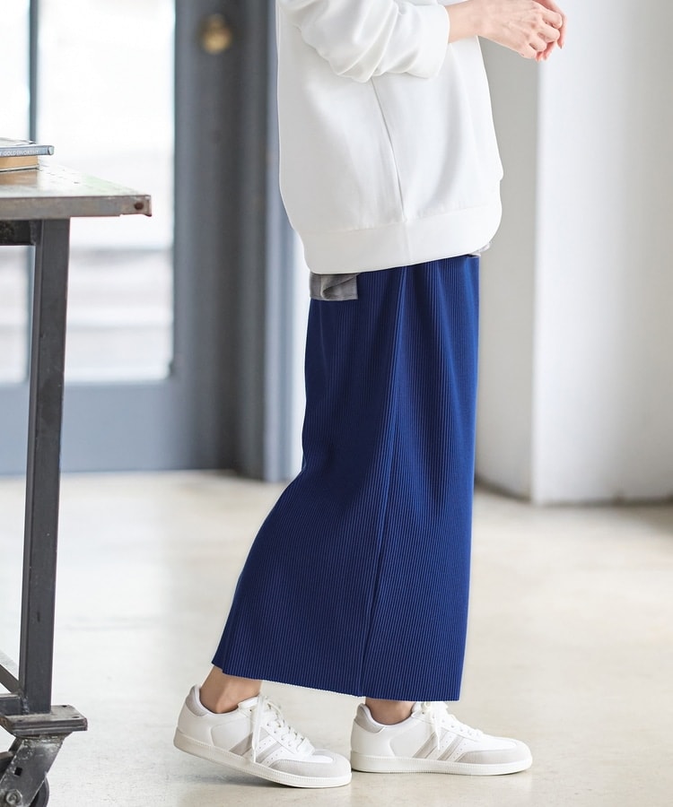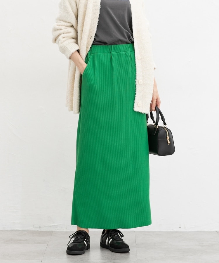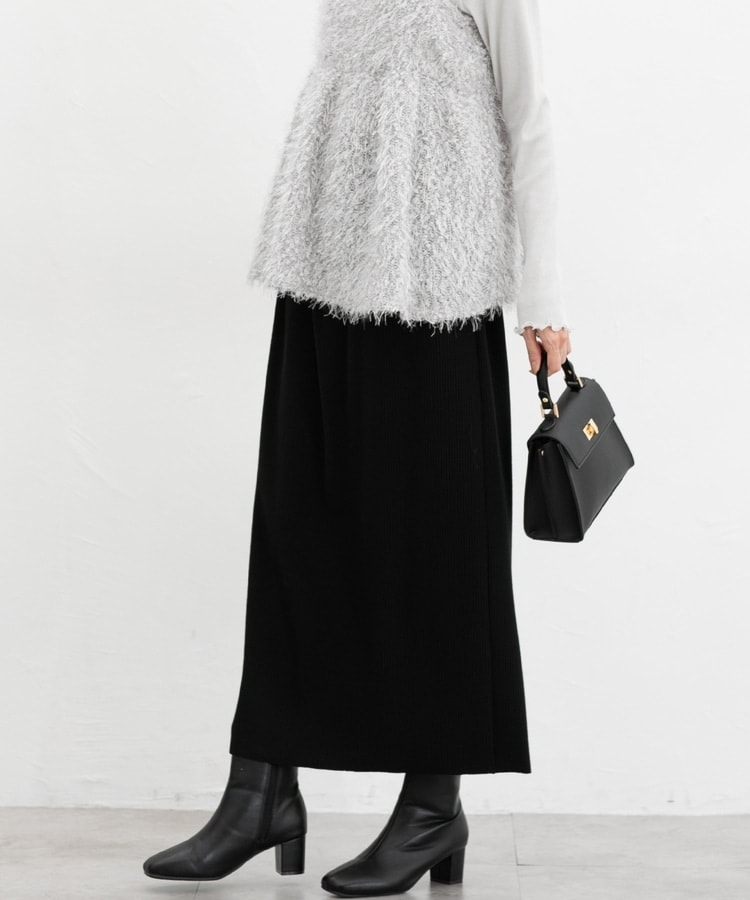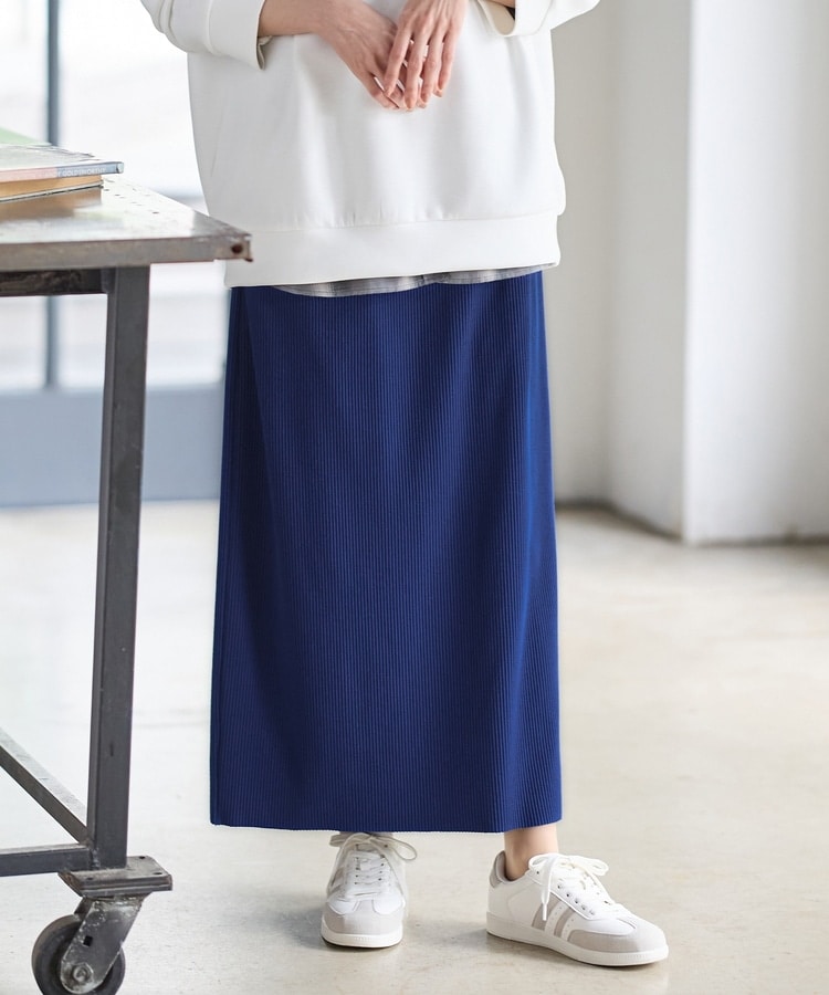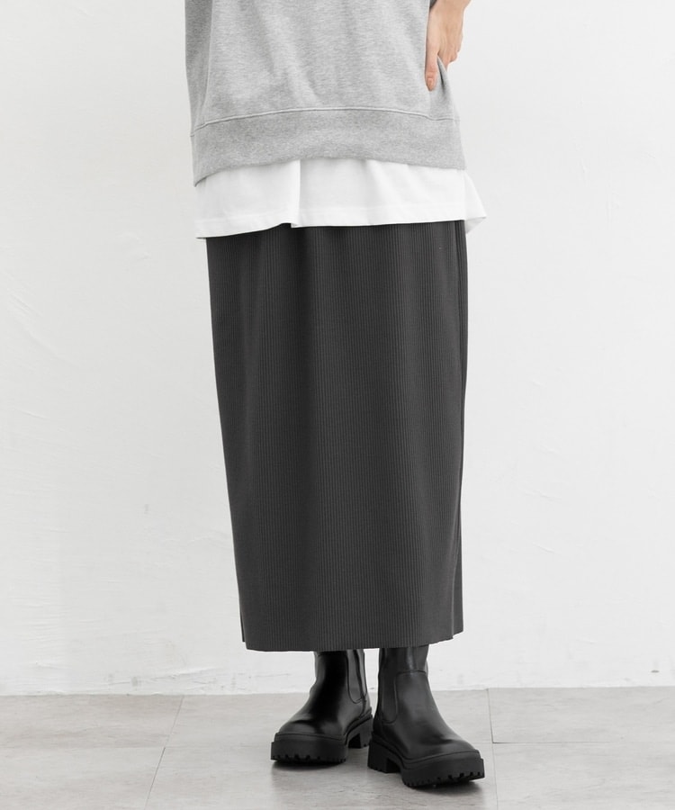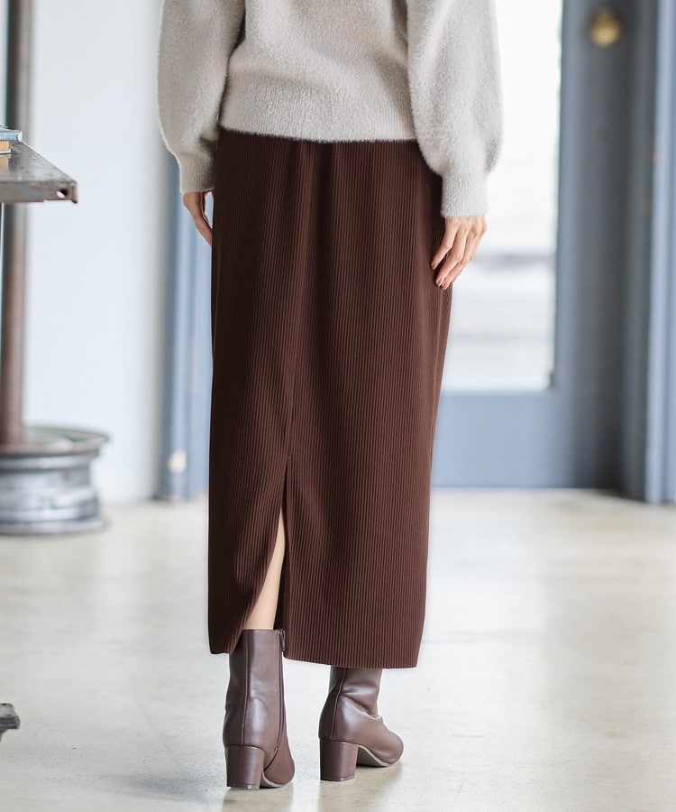 縦の編み目とすとんとしたIラインシルエットで脚長効果抜群のシンプルデザイン。