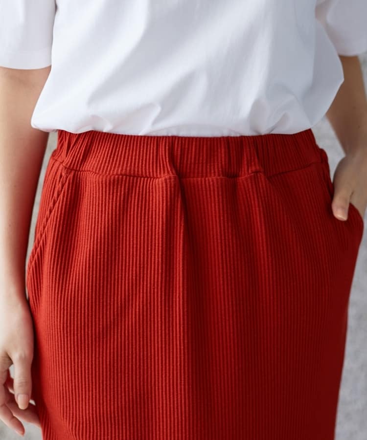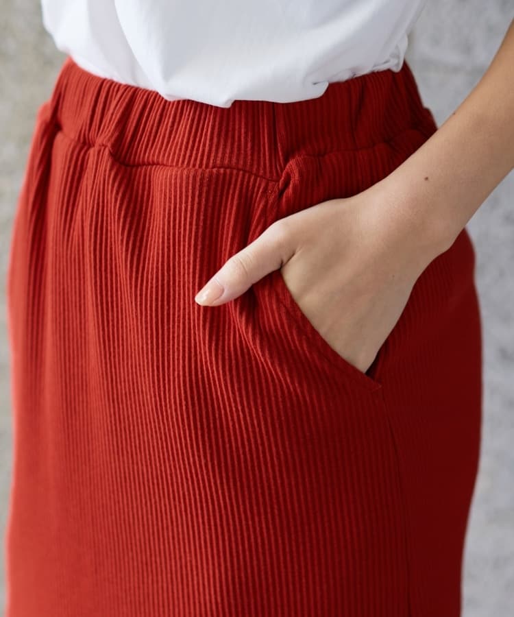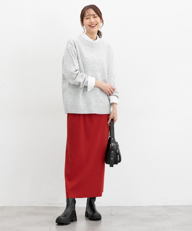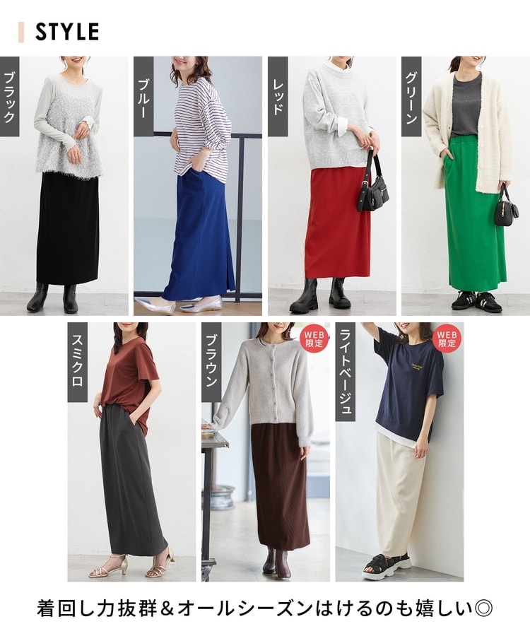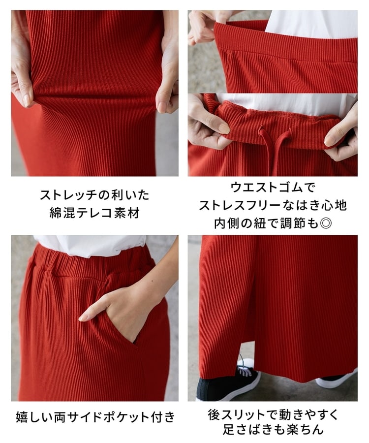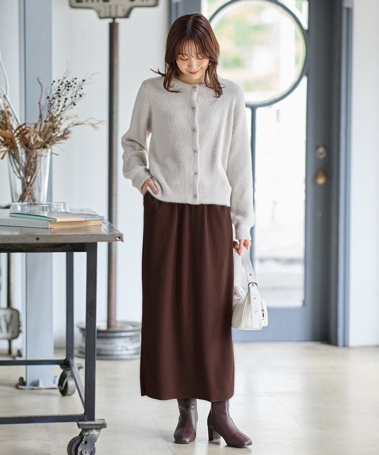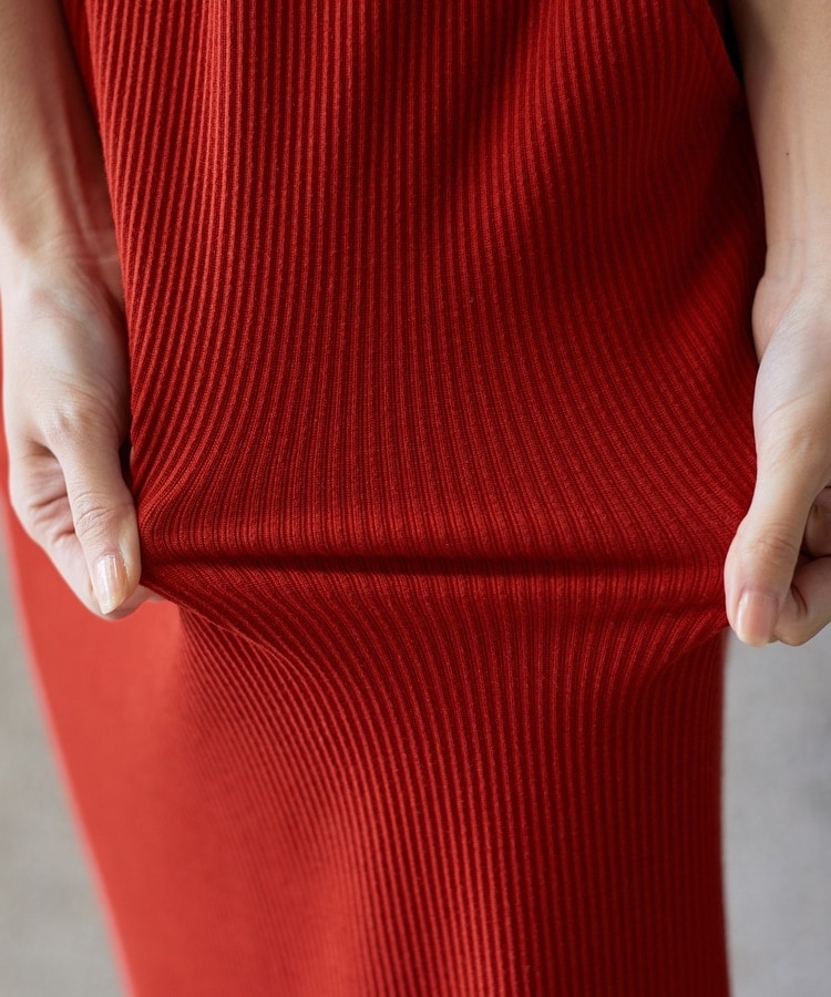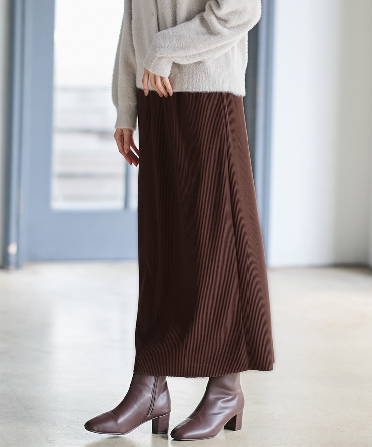 縦の編み目とすとんとしたIラインシルエットで脚長効果抜群のシンプルデザイン。