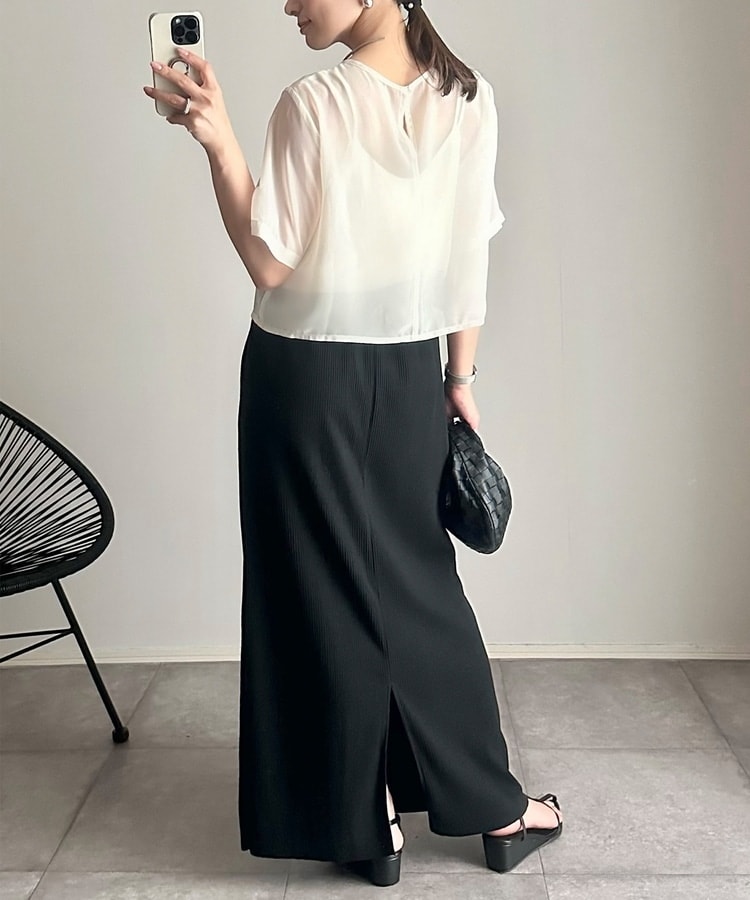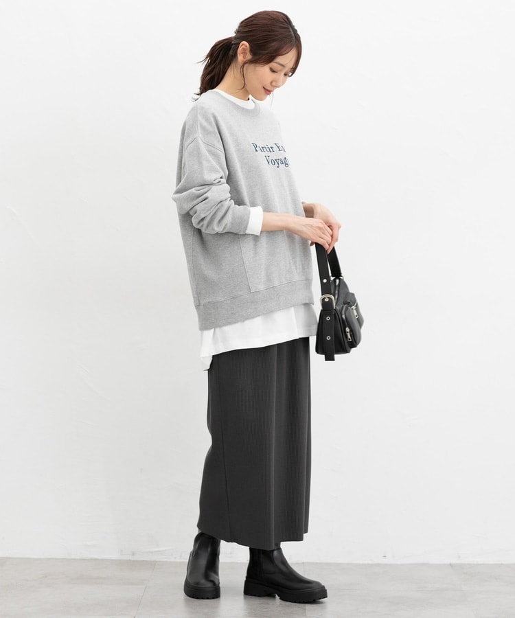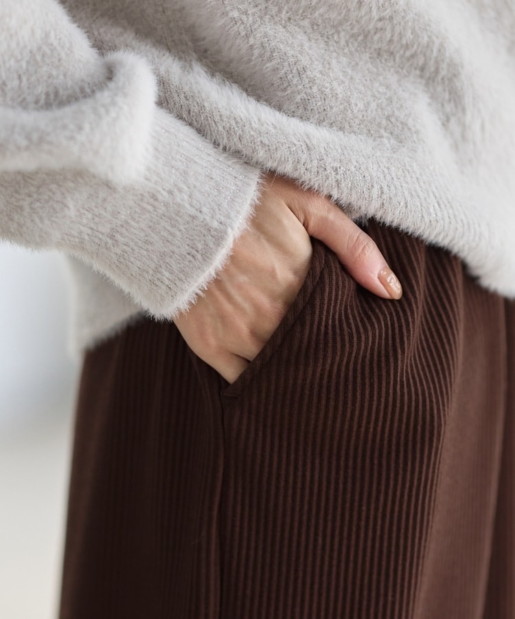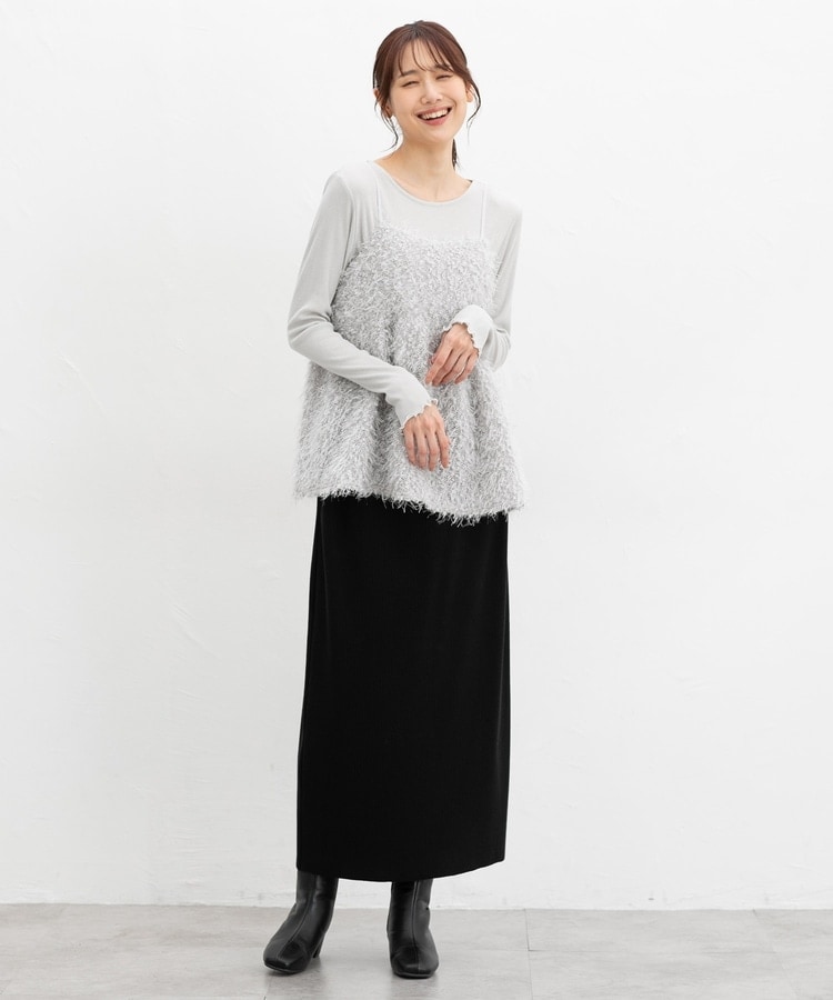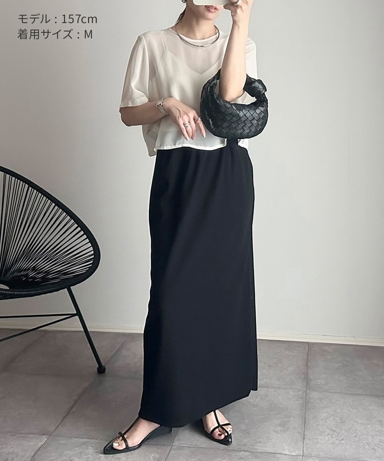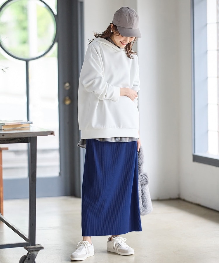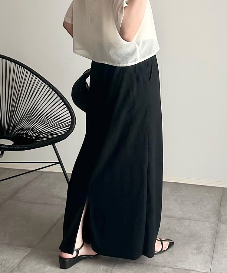 縦の編み目とすとんとしたIラインシルエットで脚長効果抜群のシンプルデザイン。