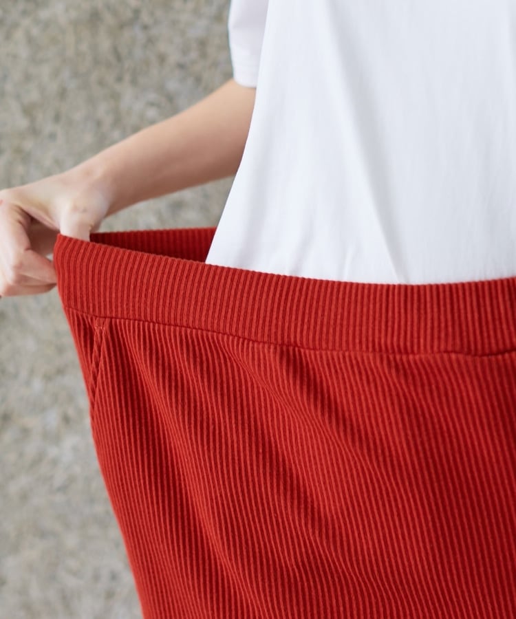 ストレッチの利いた綿混テレコ素材とウエストゴムで、ストレスフリーなはき心地。