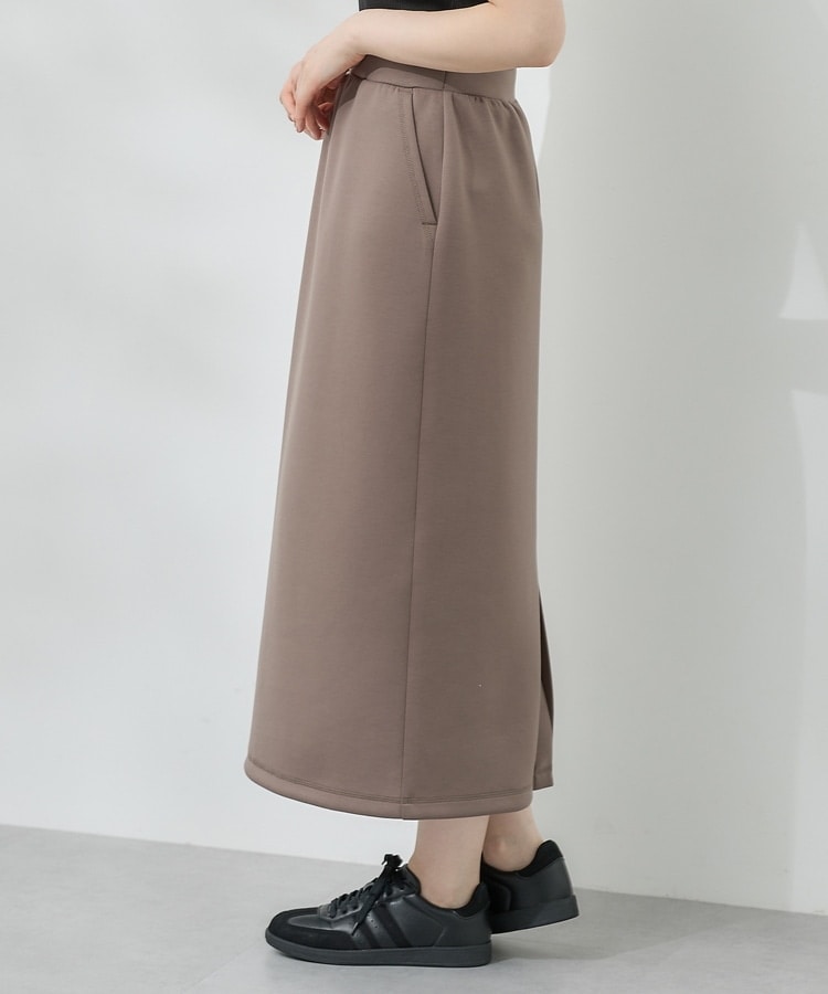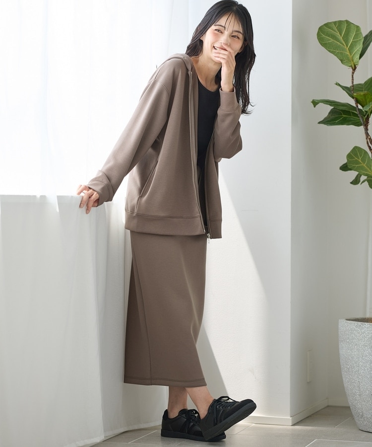 もちもちの肌触りで軽くストレッチも利いた、両面が滑らかなレーヨン混のきれいめスウェット素材。