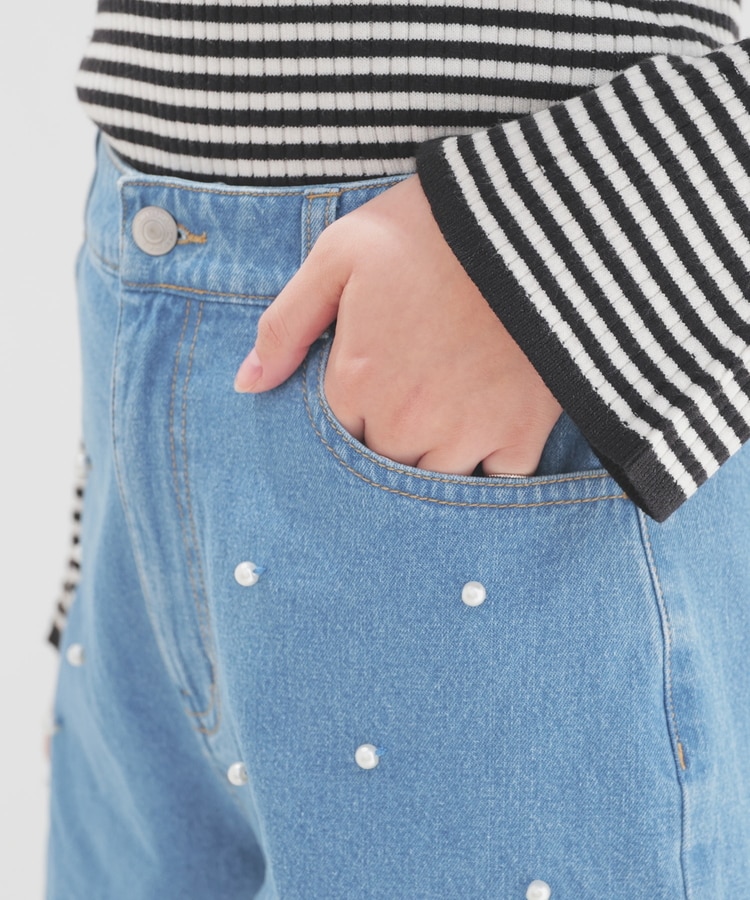 フロントにパールビーズをちりばめたトレンドライクなデザイン。
