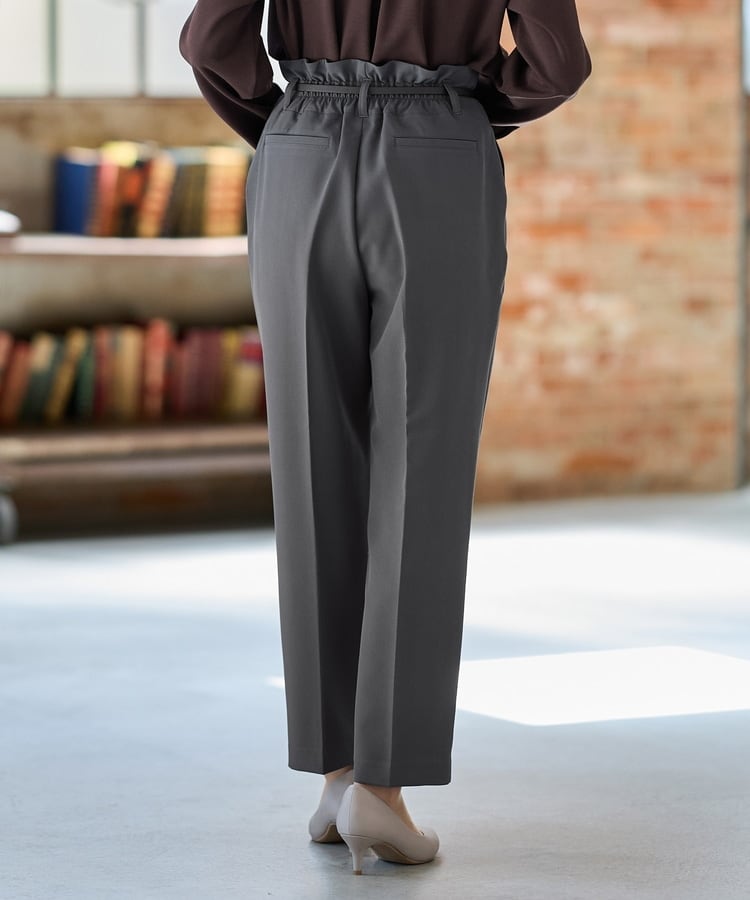 ストレッチの利いた素材に、後ろウエストゴムでストレスフリーなはき心地。