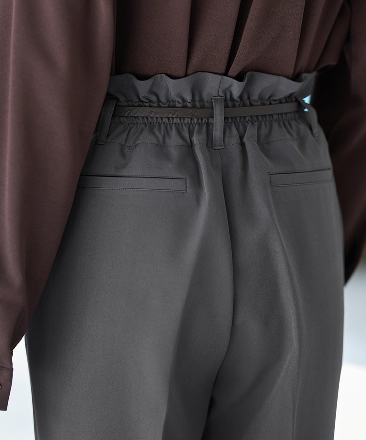 ハイウエストとフロントタックで、ウエスト周りをすっきりさせながら、腰回りは程よいゆったり感。