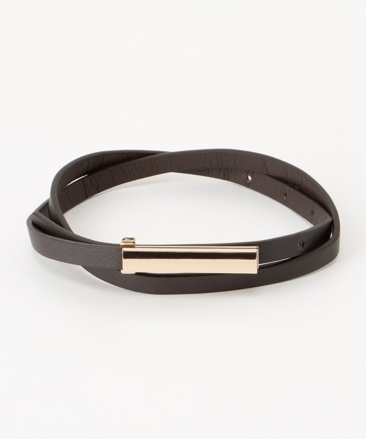 コーディネートのアクセントになる、上品なゴールドバックルの合皮ベルト付き。