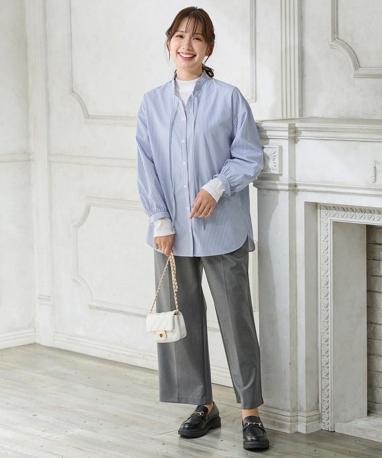 ゆったりシャツをインした抜け感のあるコーデや、ローゲージニットと合わせた大人カジュアルなコーデがおすすめ。