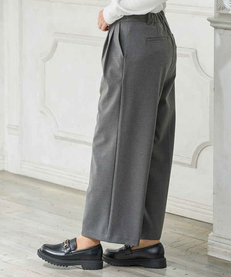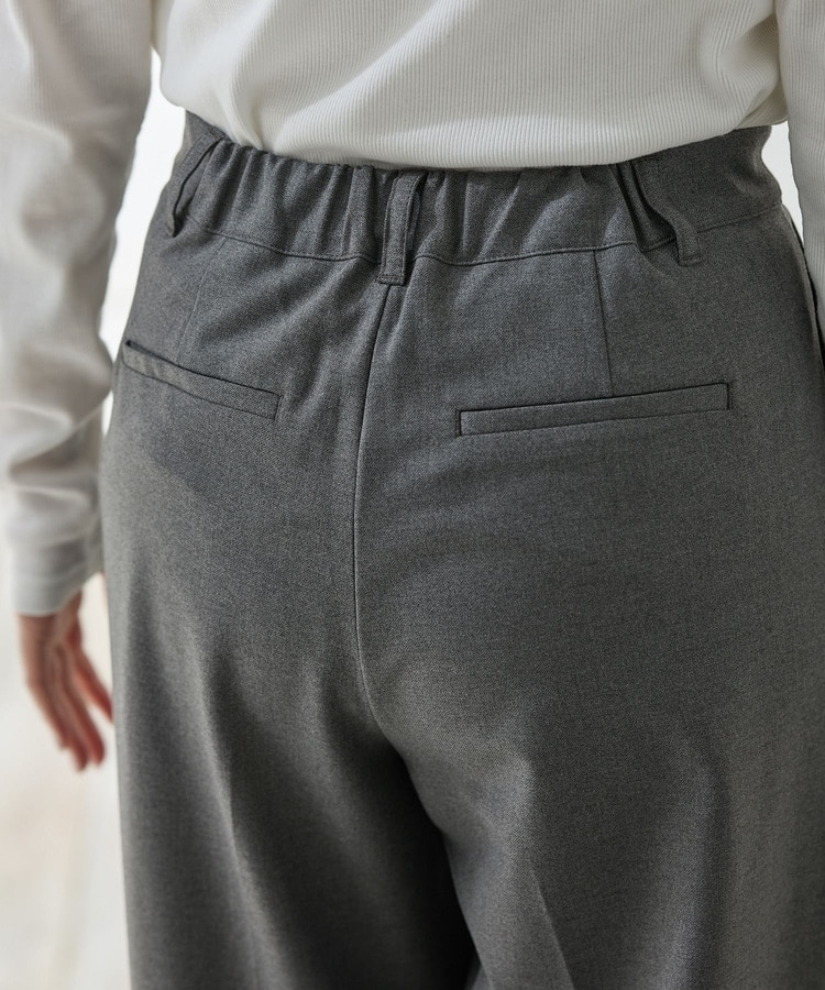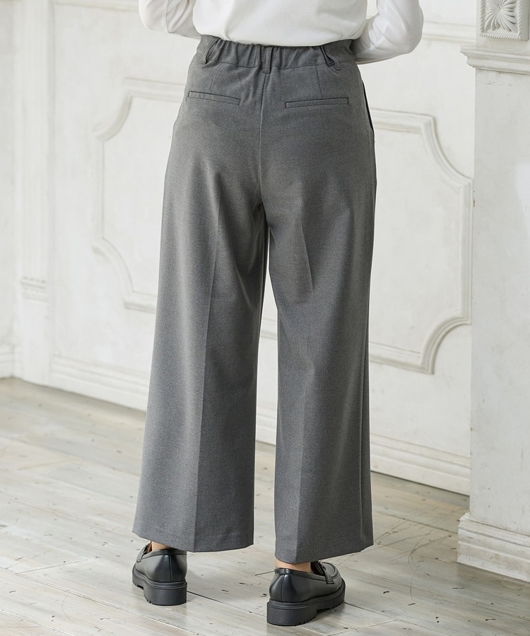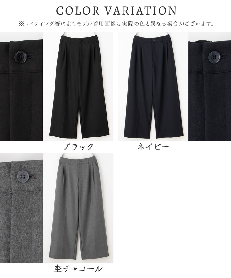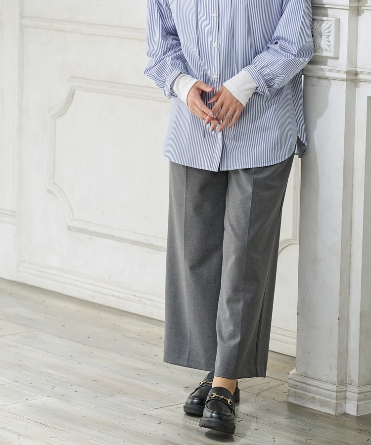 きちんと感のあるセンタープレス入りで、美脚効果も抜群のストレートパンツ、股下65cmタイプ。