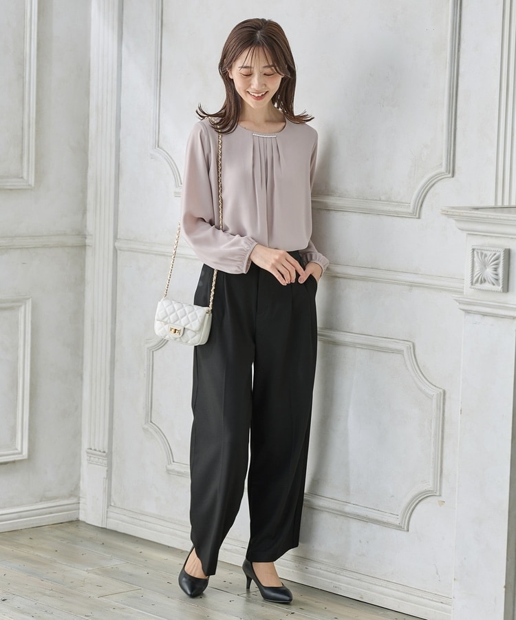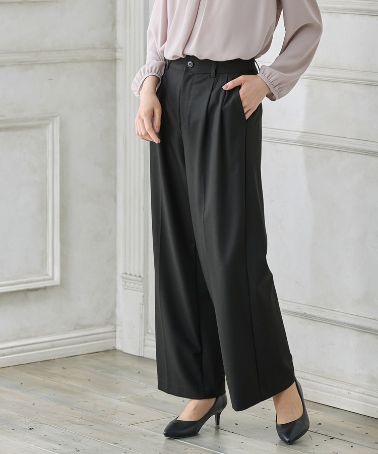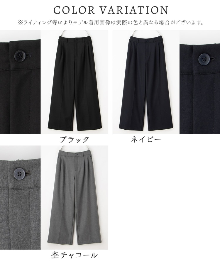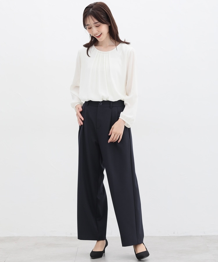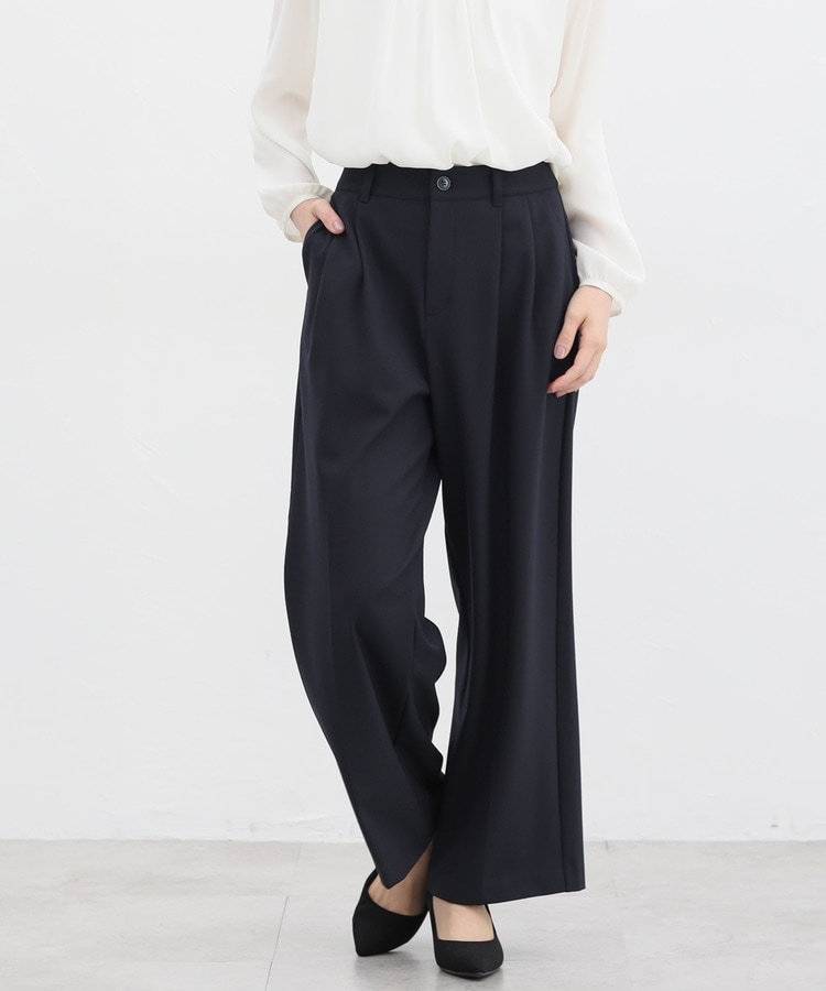 きちんと感のあるセンタープレス入りで、美脚効果も抜群のストレートパンツ、股下68cmタイプ。