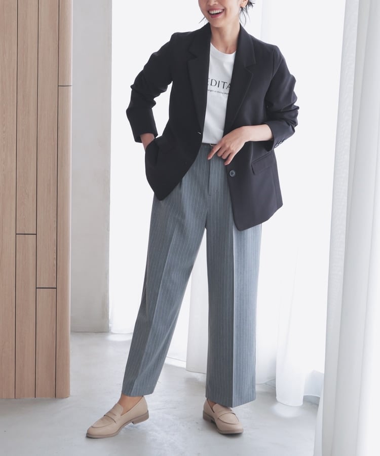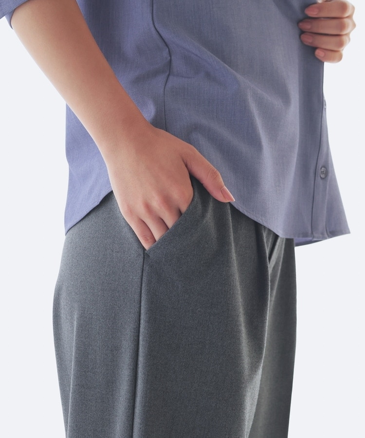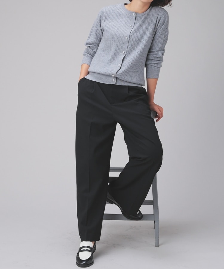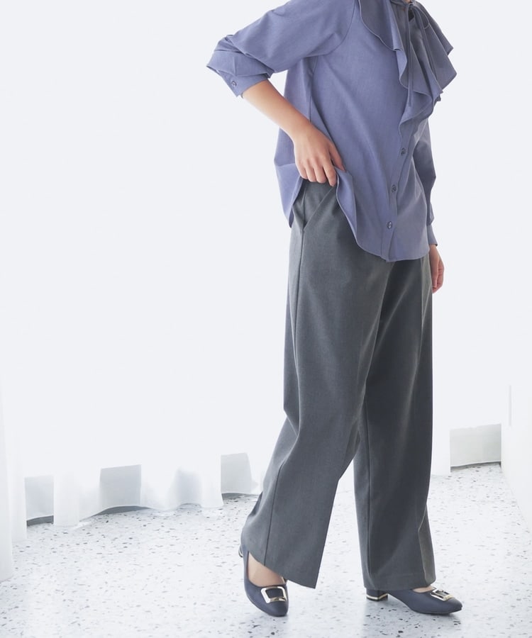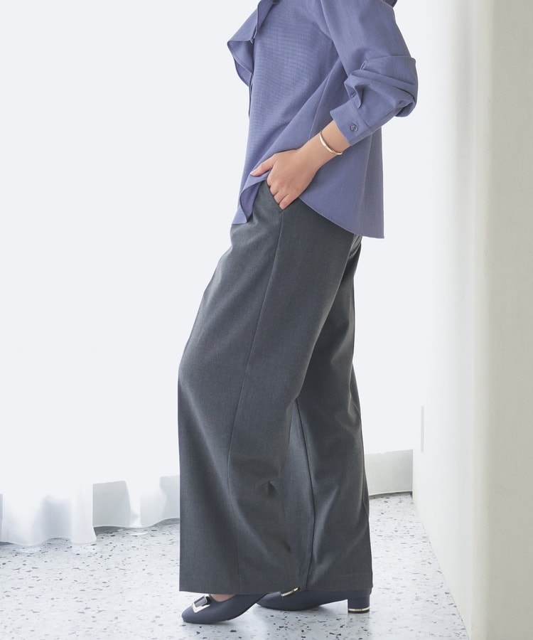 ストンと落ちたシルエットとセンタープレスが、足をすらっときれいに見せてくれるデザイン。
