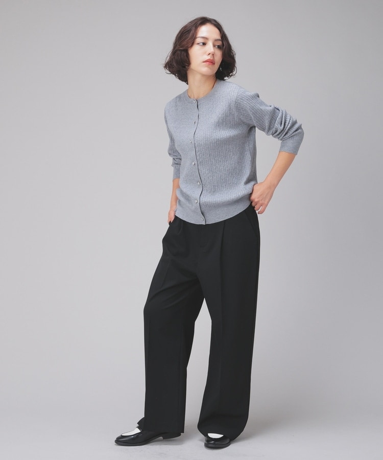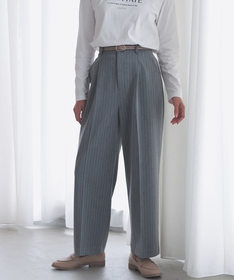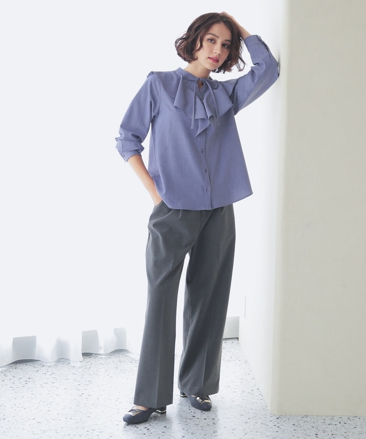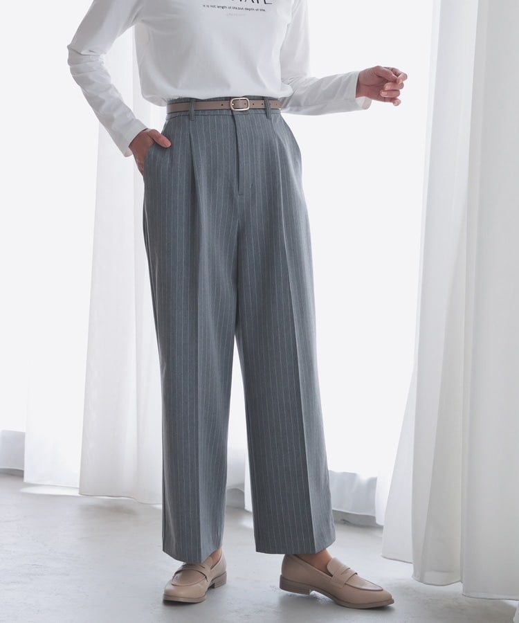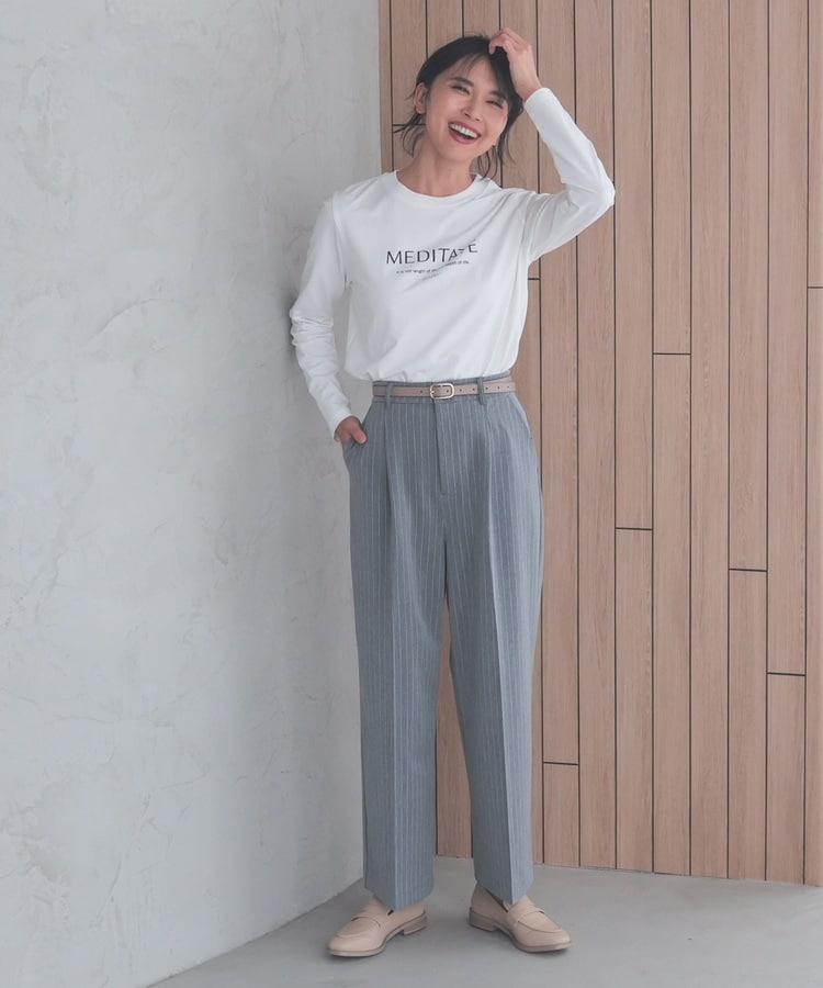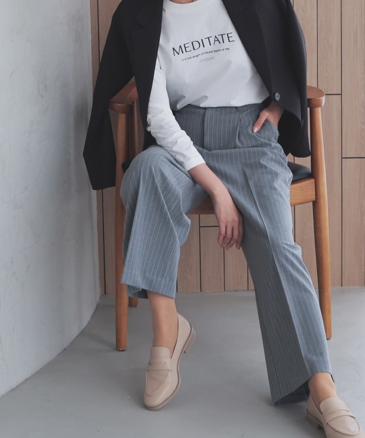 ストンと落ちたシルエットとセンタープレスが、足をすらっときれいに見せてくれるデザイン。