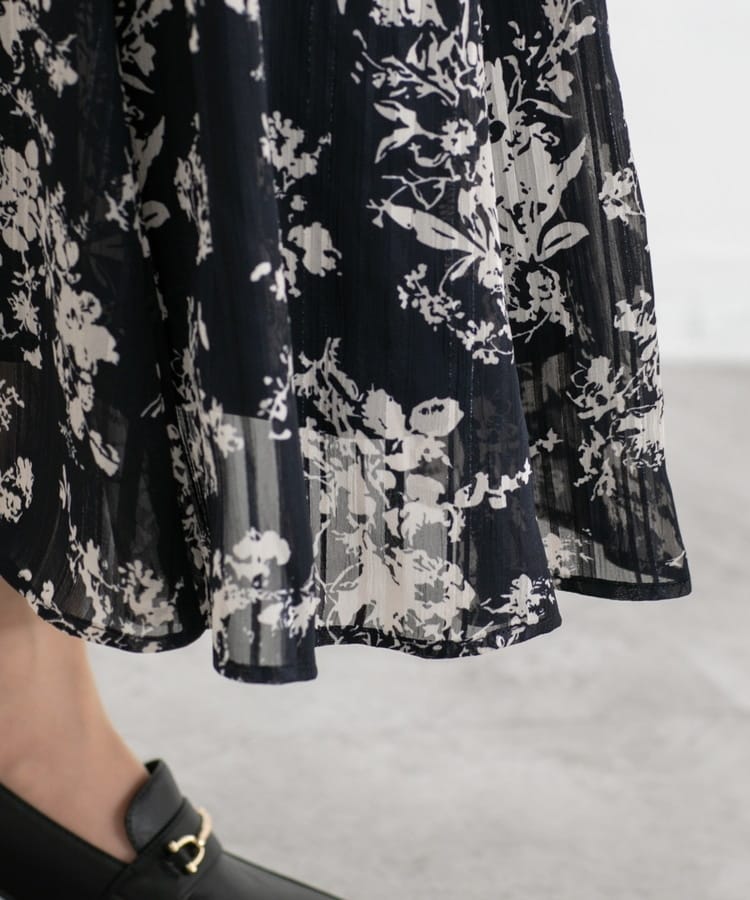 シアー感のある素材に花柄プリント×ラメの華やかなデザイン。
